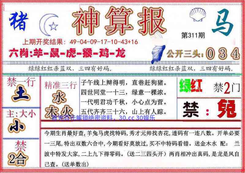 | 311期 | 虎肖 | 0尾 | 07合 | 蛇37 |